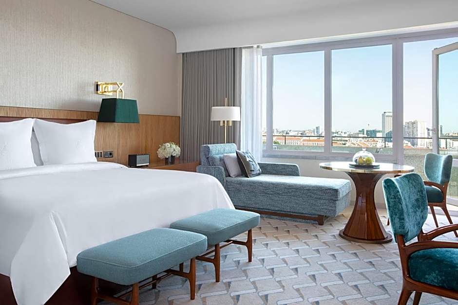 Offering either Eduardo VII Park or Tagus River views, this imperial-style suite includes 3 large terraces. The living room is particularly bright and furnished with a very comfortable seating area with sofa, a large executive working desk and a dining table that seats four.